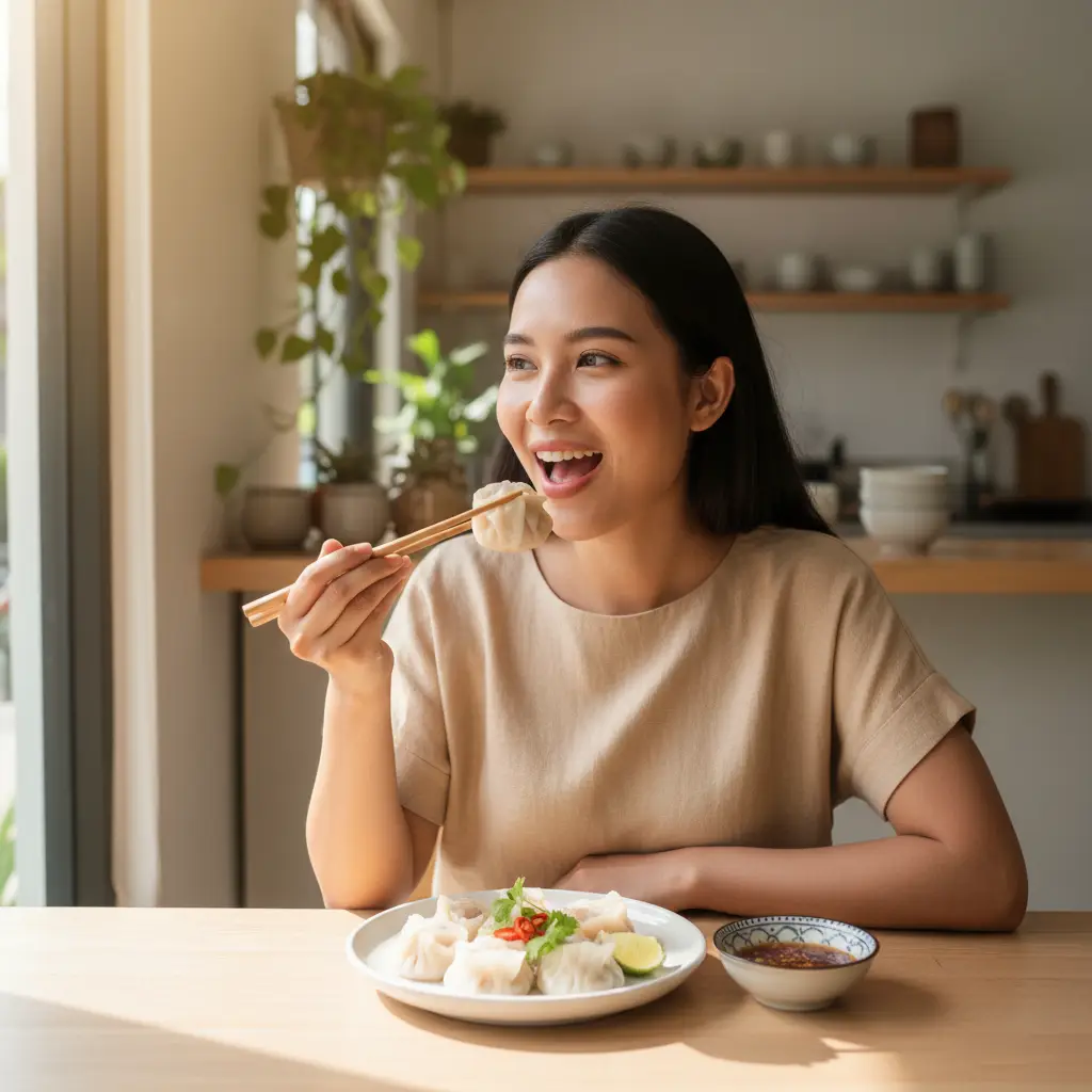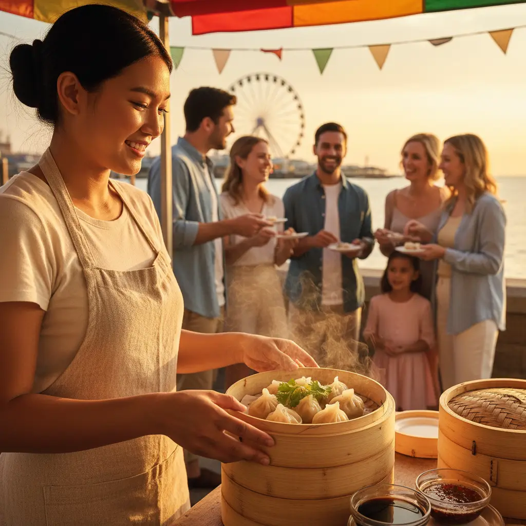 We live in a time where everyone loves short, catchy words — like “Riz” in the States. In Thailand, people used to say, “May I please have one order of Kanom Jeeb?” but now you’ll often hear “Dumpling, please!” or “Jeep Dai Mai?” — short, fun, and easy. “Jeep Dai Mai” even has a playful double meaning: “Can I flirt with you?” It’s a phrase meant to make people smile and feel connected, just like our symbol of love — two fingers together.